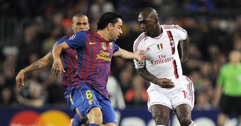 Milan stunned Camp Nou when they drew level in the 32nd minute with Antonio Nocerino demonstrating great composure to beat Victor Valdes after being released by a superb threaded pass from Zlatan Ibrahimovic.